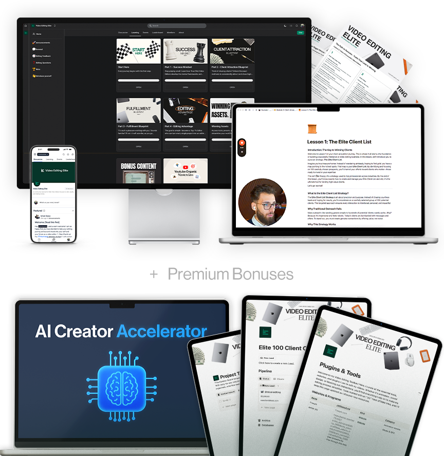 Inside Video Editing Elite, you'll learn the system I used to go from free trials and $50 edits… to premium YouTube clients, consistent $3k–$5k/month income, while helping businesses explode.